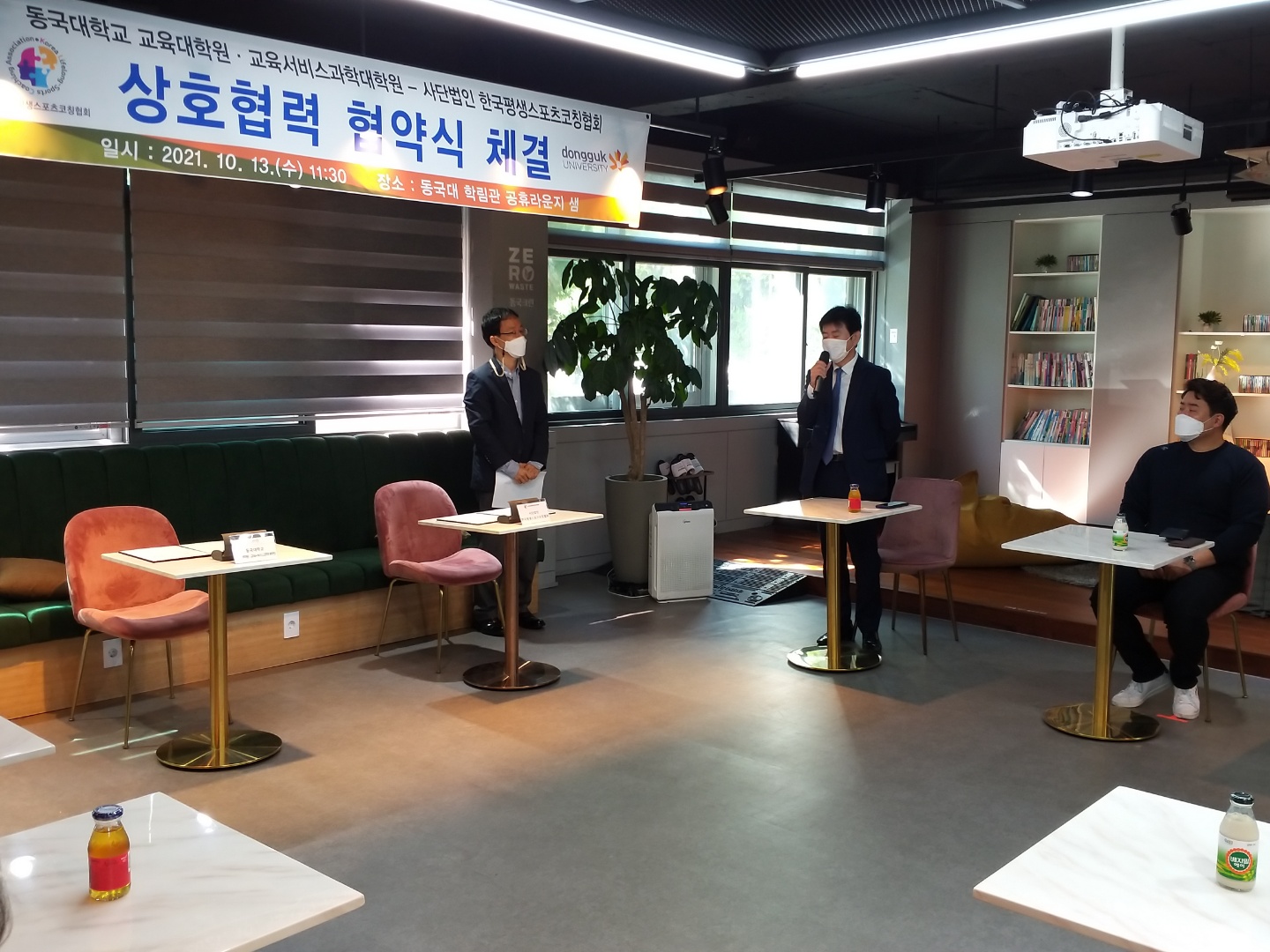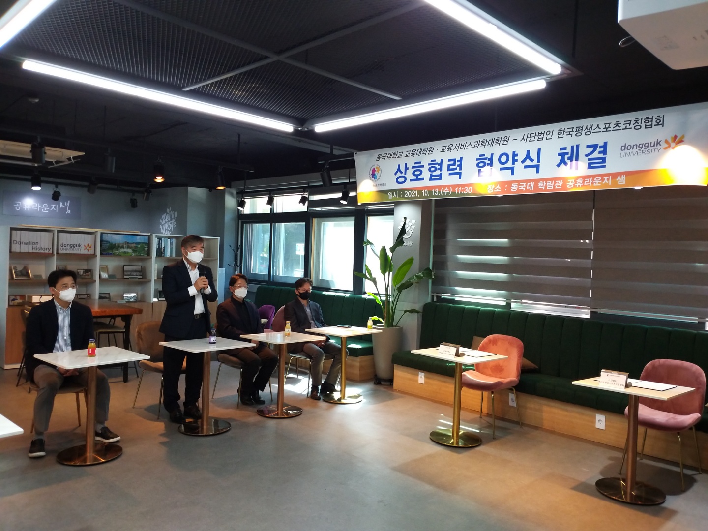 협약식은 10월 13일(수) 한국평생스포츠코칭협회(회장 양원석)과 동국대 교육대학원 및 교육서비스과학대학원(원장 조상식)과