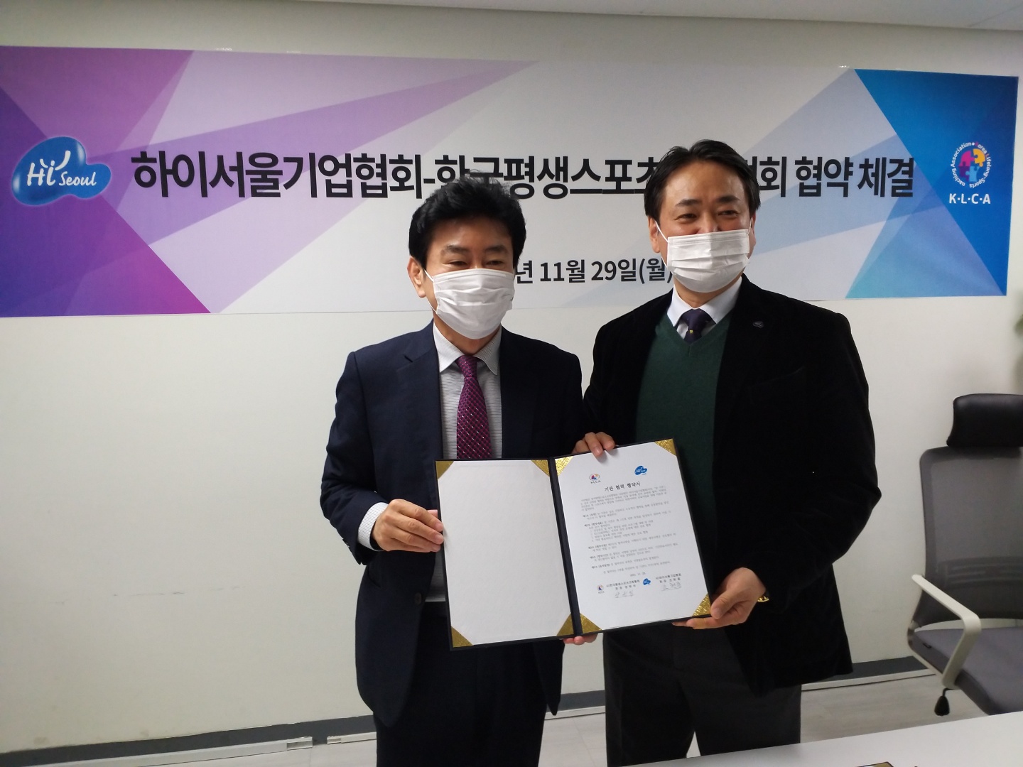 2021년 11월 29일(월)11시 하이서울기업협회에서 한국평생스포츠코칭협회(KCLA, 회장 양원석)와 하이서울기업협회(회장 조현종)가